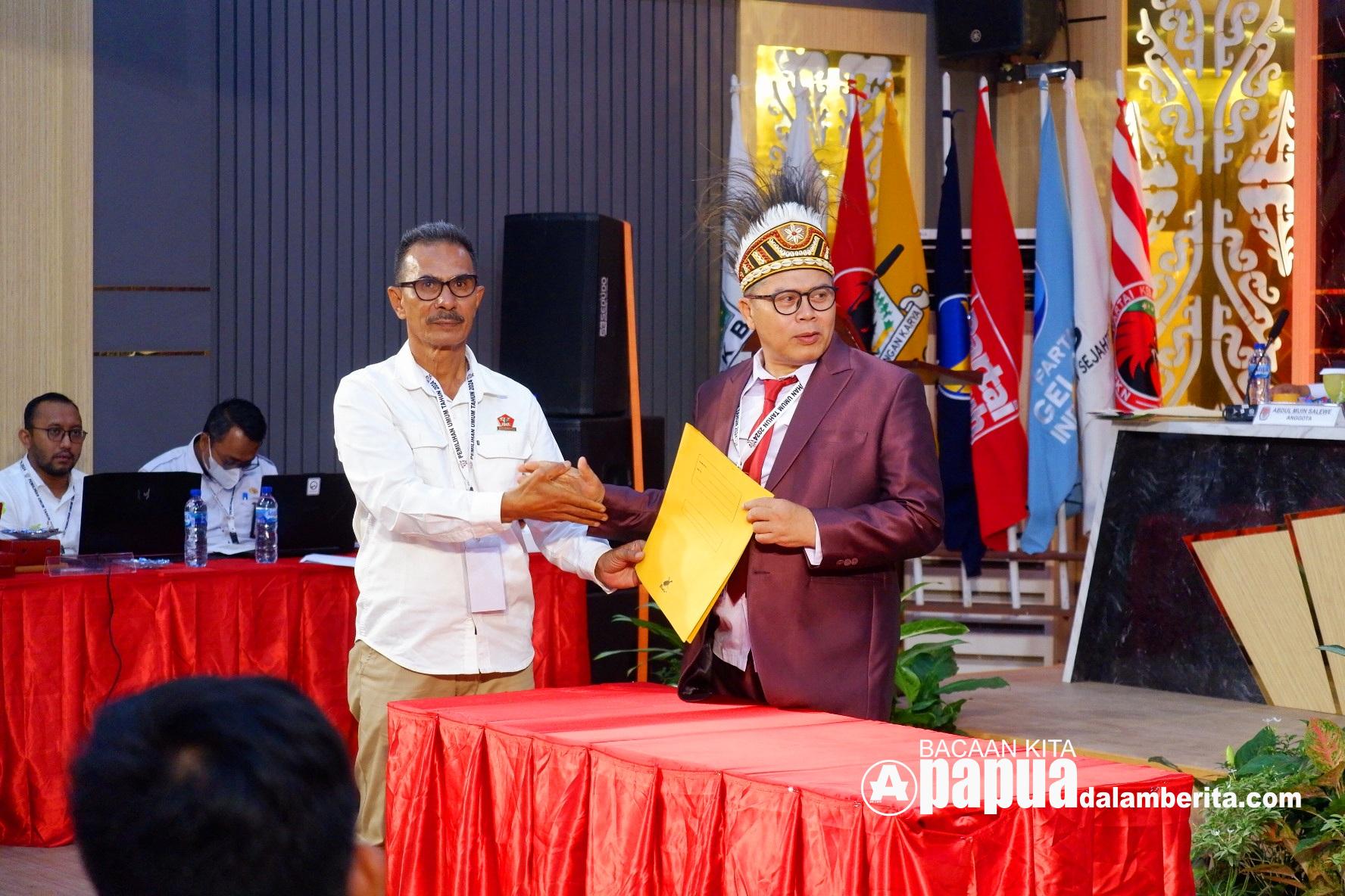 Komisioner KPU Papua Barat menerima pencabutan keberatan Partai Gerindra asal Fakfak.(tam)