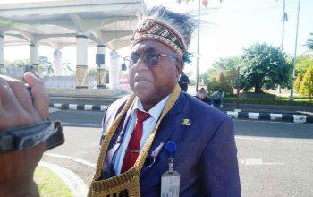 Sekda Papua Barat Drs H Ali Baham Temongmere, M.TP saat menjadi Irup pada Upacara memperingati HUT Ke-30 Otonomi Daerah, Senin (27/4/2026). FOTO RUSTAM MADUBUN.PAPUADALAMBERITA.