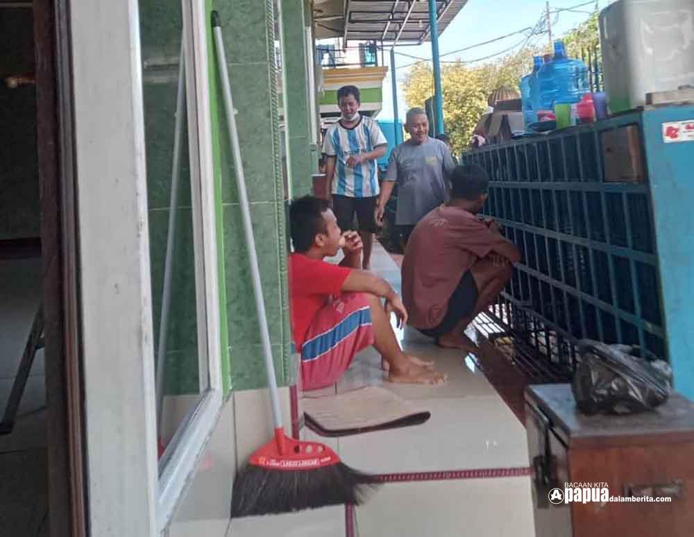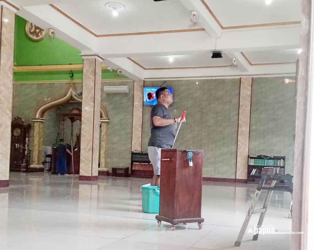 Jamaah melakukan kerja bakti membersihkan area dalam dan halaman Masjid At Taqwa Kampung Makassar Wosi di Manokwari. FOTO: DOKUMENTASI PENGURUS MASJID At Taqwa Kampung Makassar.