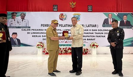 Dalam pembukaan Latsar Calon Pegawai Negeri Sipil (CPNS) Kabupaten Fakfak Tahun 2026. Bupati Fakfak Samaun Dahlan juga membeikan plakat Pemerintah Kabupaten Fakfak kepada Deputi Bidang Transformasi Pembelajaran Aparatur Sipil Negera LAN RI. Dr. Tri Widodo Wahyu Utomo, SH, MA., Kepala Kantor Regional XIV BKN Manokwari, Basuki Ari Wicaksono, S.H., M.H.