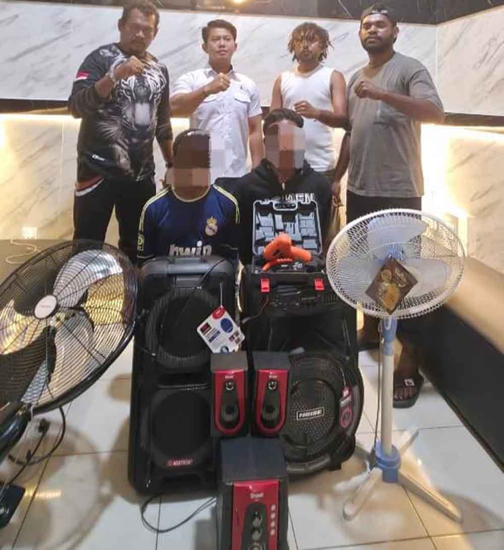 Dalam penangkapan itu, polisi juga menyita sejumlah barang bukti yang diduga merupakan hasil pencurian, antara lain tiga unit speaker berbagai merek, dua unit kipas angin, serta satu unit mesin bor beserta mata bor yang diduga diambil dari Gereja Ebenhezer.
