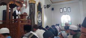 Ustadz Mohammad Ramli Cabe saat khotbah Idul Adha di Masjid Nurul Fata Manoriang Reremi Puncak Manokwari, Papua Barat, Ahad (10/7/2022). PAPUADALAMBERITA. FOTO: RUSTAM MADUBUN.