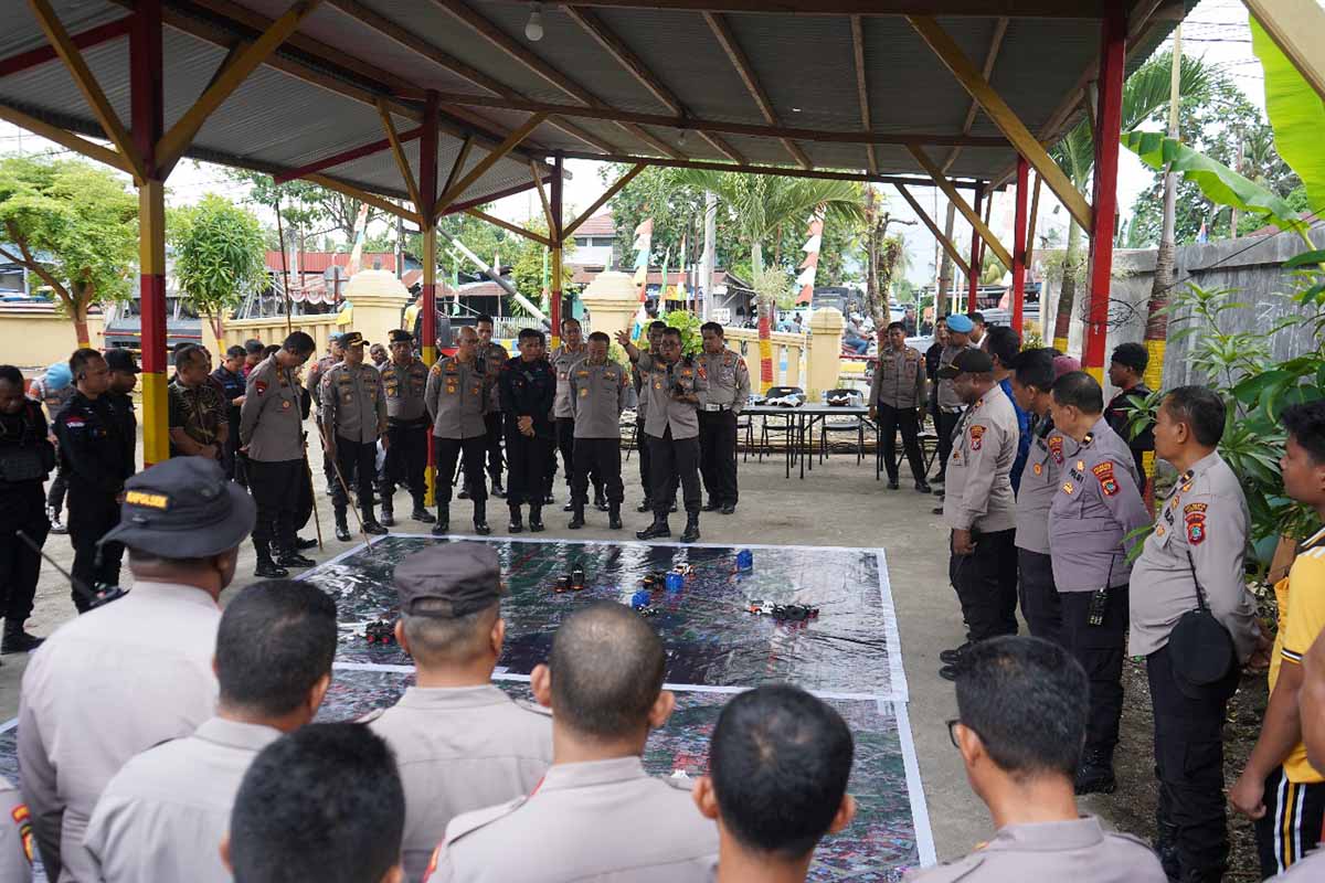 Kapolda Papua Barat Irjen Pol. Johnny Eddizon Isir, S.I.K., M.T.C.P., didampingi Pejabat Utama Polda Papua Barat, Kapolresta Manokwari memimpin langsung Tactical Floor Game (TFG) di Polsek Manokwari Kota, Jumat (29/8/2025), sebagai bentuk kesiapsiagaan personel menghadapi potensi gangguan kamtibmas.FOTO: HUMAS POLDA PAPUA BARAT
