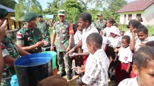 Di tempat terpisah Danpos Kumurkek Letda Inf Krisman Panduwinata Zendrato mengatakan selain mengajarkan materi pelayanan kesehatan personel Satgas juga mengejarkan cara mencuci tangan dan menyikat gigi yang baik dan benar kepada siswa-siswi di SD Inpres 13 Kumurkek.