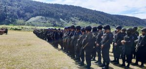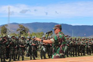 Pasukan pengamanan kunjungan Presiden ke Kabupaten Pegunungan Arfak, Papua Barat saat Apel, Senin (28/10/2019). FOTO: kodim manokwari/papuadalamberita.com